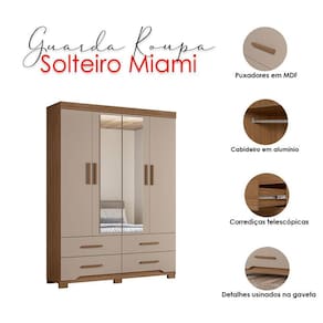 Organize seu quarto com elegância e o melhor custo benefício do mercado. Apresentamos o Guarda Roupa Solteiro Miami e Cômoda Vênus fabricados pela Moval. Guarda Roupa com 04 portas e 04 gavetas com corrediças telescópicas, espelhos inclusos, puxadores em MDF, cabideiro em alumínio para melhor organização interna, detalhes usinados nas gavetas, espaço ideal para roupas longas e pés em PVC. A cômoda possui 04 gavetas com corrediças metálicas, 01 porta, detalhe frisado, pés em PVC e puxadores em MDF. Fabricado com materiais de alta qualidade que garante resistência e durabilidade ao produto. Confira mais detalhes e aproveite!