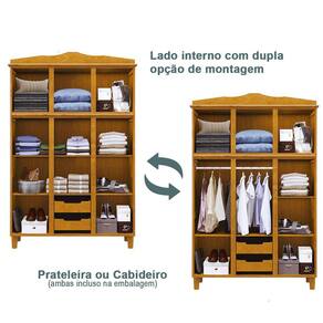 Conteúdo da Embalagem: 1 Guarda-Roupa, Manual de instruções e Kit Ferragem;