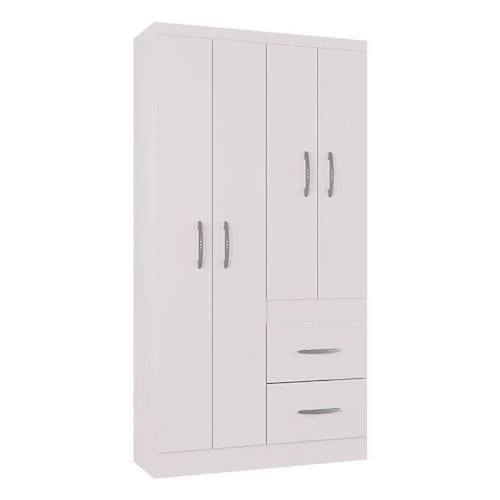 Guarda Roupa Solteiro Milão 4 Portas Branco Brilho Poquema