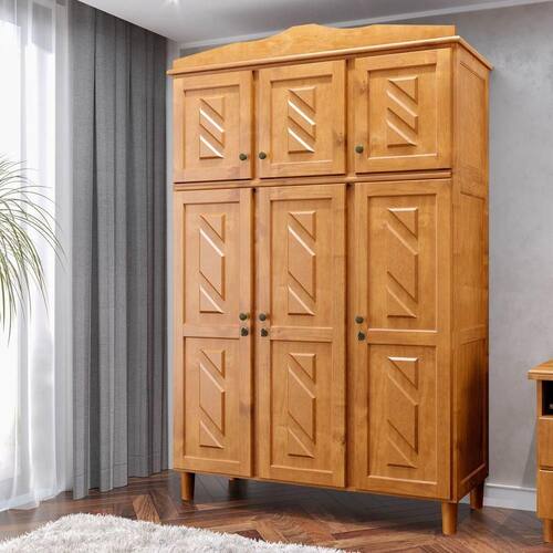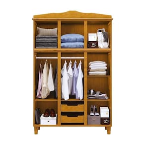 Guarda-Roupa Solteiro Milão Mel 3 Portas Maleiro 2 Gavetas Madeira Pinus - Cavazotto