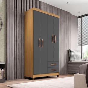 Guarda Roupa Solteiro Modena 4 Portas Carvalho Americano Grafite - Incorplac