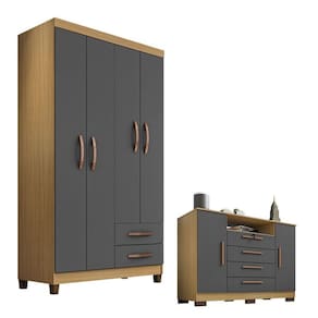 Guarda Roupa Solteiro Modena 4 Portas com Cômoda Madri na cor Carvalho Americano Grafite – Incorplac