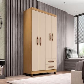 Guarda Roupa Solteiro Mogi 4 Portas Carvalho Americano Off White - Incorplac