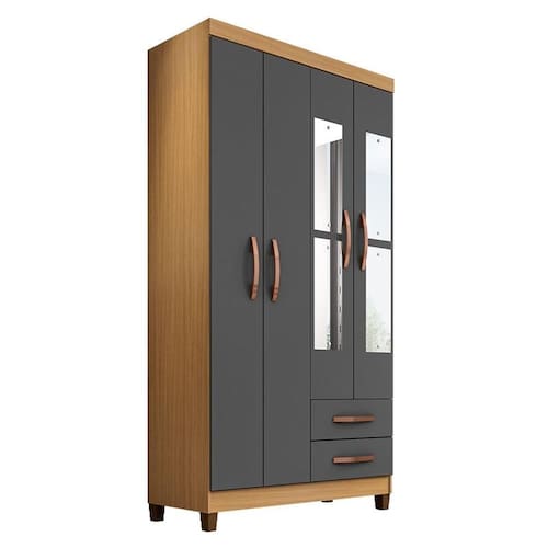 Guarda Roupa Solteiro Mogi com Espelho 4 Portas Carvalho Americano Grafite - Incorplac