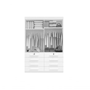 Características: Estrutura em MDF Gavetas com corrediças telescópicas Profundidade da gaveta: 40 cm Suporte cabide metálico Duas gavetas com chave Produzido com chapa de 15mm 8 Gavetas 3 opções de montagens na parte interna