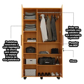 Armário OURO Não perca tempo! Garanta agora o Armário OURO e transforme sua casa com praticidade, beleza e organização em um só produto. O Armário OURO é a escolha perfeita para quem busca elegância, funcionalidade e durabilidade. Fabricado em MDP Premium de alta qualidade com acabamento em verniz UV semi-brilho acetinado, ele traz sofisticação para qualquer ambiente e se adapta facilmente a diferentes necessidades: quarto, sala, lavanderia, escritório, arquivo ou até closet. Versátil e inteligente, este armário oferece 10 prateleiras removíveis, que podem ser ajustadas de acordo com o espaço que você precisa, permitindo armazenar desde roupas e sapatos até documentos e utensílios do dia a dia. Acompanha cabideiro em alumínio opcional, permitindo a você escolher se prefere usar ou não. Para ainda mais segurança, já vem equipado com fechadura com chave, ideal para proteger objetos de valor e documentos. Principais Características Estrutura em MDP Premium de alta qualidade (facilita montagem e desmontagem com segurança sempre que necessário) Acabamento em verniz UV semi brilho 02 portas com dobradiças de aço 10 prateleiras ajustáveis ou removíveis 01 cabideiro em alumínio incluso (uso opcional) Fechadura com chave para maior segurança Puxadores em MDF modernos e robustos 05 pés ABS anti-umidade, que evitam contato direto com o piso Suporta até 6 kg por prateleira Necessita montagem, com manual prático incluso Produto de fácil montagem e desmontagem, facilitando sempre que necessitar