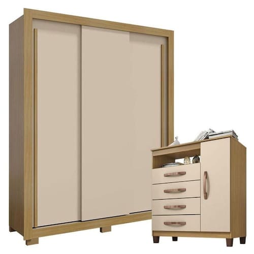 Procurando móveis para o quarto? Apresentamos esse lindo conjunto composto pelo guarda roupa da linha Nevoá e cômoda Cannes. Com um design contemporâneo fabricados com materiais de altíssima qualidade em MDP garantindo maior resistência e durabilidade para os móveis. O guarda roupa possui amplo espaço interno para organizar roupas e acessórios. Os cabideiros facilitam a organização das peças penduradas, enquanto os 6 pés garantem estabilidade e facilitam a limpeza do ambiente. O armário multiuso deixara seu ambiente mais funcional por ser versátil e compacto. Não perca mais tempo a hora é agora venha já garantir o seu!