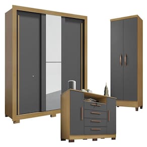 Guarda Roupa Solteiro Nevoa Flex 3 Portas de Correr com Espelho com Cômoda Madri e Armário Multiuso Egito Carvalho Americano Grafite – Incorplac