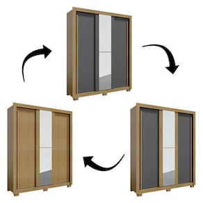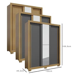 Guarda Roupa Solteiro Nevoa Flex 3 Portas de Correr com Espelho Carvalho Americano Grafite – Incorplac