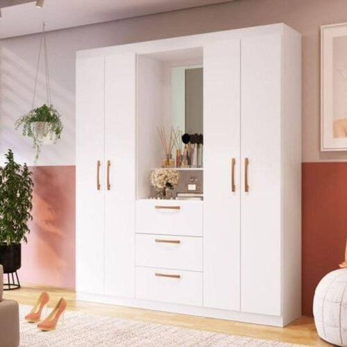 Guarda Roupa Solteiro Panama 4 Portas 3 Gavetas C/espelho Branco - Doripel Guarda-Roupa 4 Portas 3 Gavetas Com Espelho Doripel PanamáO Guarda Roupa Panamá da Doripel foi desenvolvido pensando em um móvel prático, bonito e durável, que se encaixa em seu ambiente como se sempre estivesse ali. Com 4 portas e 3 gavetas, o roupeiro Panamá é ideal para quem procura um móvel com excelente divisão interna com prateleiras e cabideiros. No estilo capelinha, possui 1 espelho central. O Guarda Roupa Panamá foi criado para facilitar a sua vida e te deixar a vontade, assim como sua roupa preferida.Recomendações de Uso: Para limpeza de seu móvel, use uma flanela seca ou umedecida. Não utilize produtos químicos que possam danificar o produto.Informações Importantes:- A compra do produto não acompanha montagem/desmontagem.- Os objetos que ambientam as imagens, não acompanham o produto.- Atenção: As cores das imagens podem sofrer alterações devido a luminosidade, configurações do monitor e até mesmo a percepção do usuário.Características do produto Modelo Panamá Material MDP Quantidade de portas 4 Quantidade de gavetas 3 Quantidade de espelhos 1 Quantidade de cabideiros 2 Tipo de porta Bater Puxador PVC Dobradiças Metálicas Corrediças Metálicas Dimensões espelho 70 x 35 cm (A x L) Necessita montagem Sim Complexibilidade de montagem Difícil Sistema de montagem Parafusos e Cavilhas Quantidade de volumes 2 Manual de montagem Exibir manual Marca Doripel Conteúdo da embalagem 1 Guarda Roupa, 1 Kit Montagem e Manual Do Produto Dimensões aproximadas do produto 183 x 156 x 45 cm (A x L x C) Dimensões aproximadas da embalagem 08 x 52 x 183 cm (A x L x C) Peso aproximado do produto 75 Kg Peso aproximado da embalagem 80,5 Kg Garantia do fornecedor 3 Meses Informações Adicionais Possui espelho centralizado