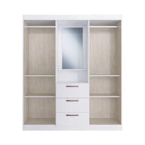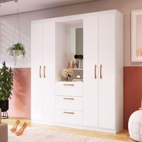 Guarda-Roupa 4 Portas 3 Gavetas Com Espelho Doripel PanamáO Guarda Roupa Panamá da Doripel foi desenvolvido pensando em um móvel prático, bonito e durável, que se encaixa em seu ambiente como se sempre estivesse ali. Com 4 portas e 3 gavetas, o roupeiro Panamá é ideal para quem procura um móvel com excelente divisão interna com prateleiras e cabideiros. No estilo capelinha, possui 1 espelho central. O Guarda Roupa Panamá foi criado para facilitar a sua vida e te deixar a vontade, assim como sua roupa preferida.Recomendações de Uso: Para limpeza de seu móvel, use uma flanela seca ou umedecida. Não utilize produtos químicos que possam danificar o produto.Informações Importantes:- A compra do produto não acompanha montagem/desmontagem.- Os objetos que ambientam as imagens, não acompanham o produto.- Atenção: As cores das imagens podem sofrer alterações devido a luminosidade, configurações do monitor e até mesmo a percepção do usuário.Características do produto Modelo Panamá Material MDP Quantidade de portas 4 Quantidade de gavetas 3 Quantidade de espelhos 1 Quantidade de cabideiros 2 Tipo de porta Bater Puxador PVC Dobradiças Metálicas Corrediças Metálicas Dimensões espelho 70 x 35 cm (A x L) Necessita montagem Sim Complexibilidade de montagem Difícil Sistema de montagem Parafusos e Cavilhas Quantidade de volumes 2 Manual de montagem Exibir manual Marca Doripel Conteúdo da embalagem 1 Guarda Roupa, 1 Kit Montagem e Manual Do Produto Dimensões aproximadas do produto 183 x 156 x 45 cm (A x L x C) Dimensões aproximadas da embalagem 08 x 52 x 183 cm (A x L x C) Peso aproximado do produto 75 Kg Peso aproximado da embalagem 80,5 Kg do fornecedor 3 Meses Informações Adicionais Possui espelho centralizado