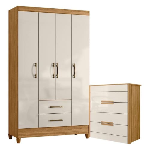 Organize seu quarto com elegância e o melhor custo benefício do mercado. Apresentamos o Guarda Roupa Solteiro Paraty e Cômoda Dhara fabricados pela Moval. Guarda Roupa com 04 portas e 02 gavetas com corrediças metálicas, puxadores na cor bronze, cabideiro para melhor organização interna, espaço ideal para roupas longas e pés em PVC. A cômoda possui 04 gavetas com corrediças telescópicas, moldura lateral de 25mm e tampo de 15mm, puxadores em MDF, pés em PVC e um design moderno que combina com qualquer decoração. Fabricado com materiais de alta qualidade que garante resistência e durabilidade ao produto. Confira mais detalhes e aproveite!
