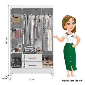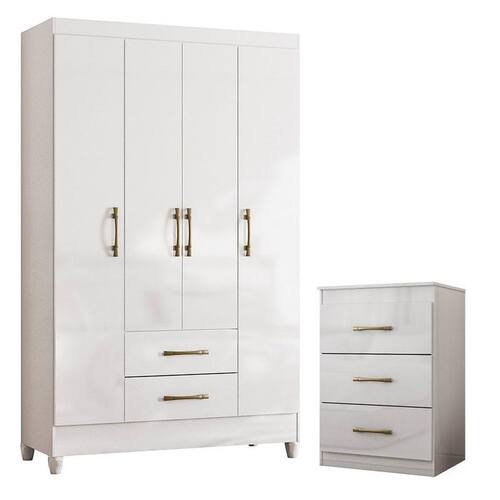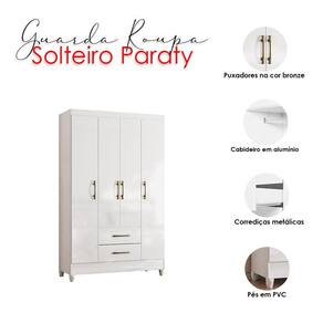 Guarda Roupa Solteiro Paraty e Cômoda Vitória Branco Brilho - Moval
