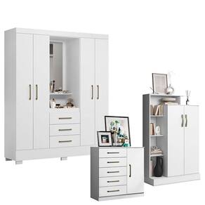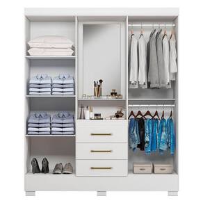 Guarda Roupa Solteiro Paris 2045150 com Armário Multiuso Florença 2000199 e Cômoda Sapateira Milão 2014145 Branco - Aramóveis