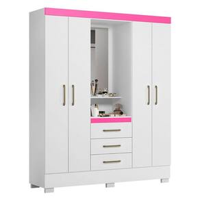 Guarda Roupa Infantil Paris 2045150 Branco Rosa Flex - Aramóveis