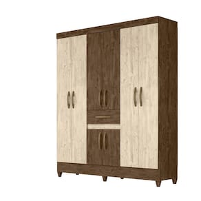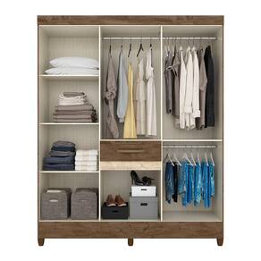 Características Estrutura em MDP de 12mm. Pintura em acabamento UV. 08 Portas articuladas com dobradiças metálicas. 01 Gaveta central com corrediças metálicas. Cabideiros em alumínio. Amplo espaço interno com prateleiras. Puxadores na cor bronze. Pés em PVC.