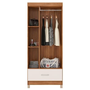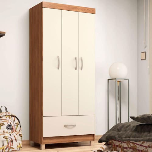 Guarda-Roupa Solteiro Prince 3 Portas 1 Gaveta Amêndola Touch/Off White - Demóbile - Bege