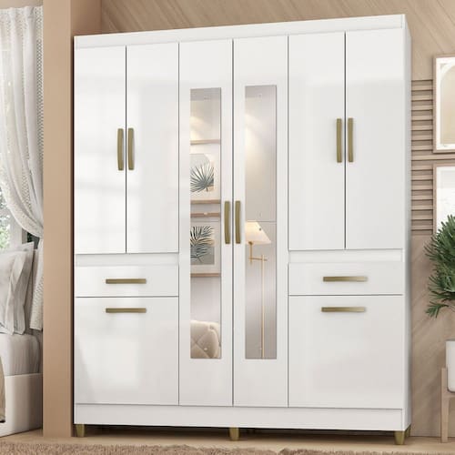 O(a) Guarda-Roupa Solteiro Província 8 Portas 2 Gavetas com Espelho Branco - Pnr Móveis é produzido em MDP na escala de brilho Brilho e Semi-Brilho, e possui um grau de dificuldade de montagem: Médio.