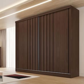Particularidades do guarda-roupa: Características: - Ripado em MDF; - 100% MDF, chapas de 15mm; - Coluna lateral de 25mm; - Gavetas com corrediças telescópicas; - Cabideiros em alumínio; - Modulado para roupas longas; - Dobradiças modernas e reforçadas;