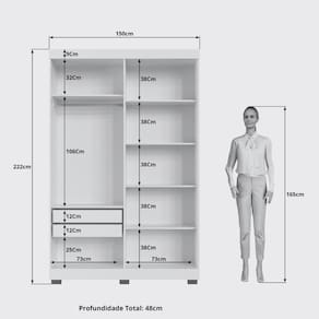 Dimensoes: Altura: 222 cm Largura: 150 cm Profundidade: 48 cm Peso: 100,00 kg