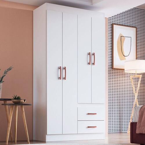 O(a) Guarda-Roupa Solteiro Rosario 4 Portas 2 Gavetas Branco - Doripel é produzido em MDP na escala de brilho Semi-Brilho, e possui um grau de dificuldade de montagem: Médio.