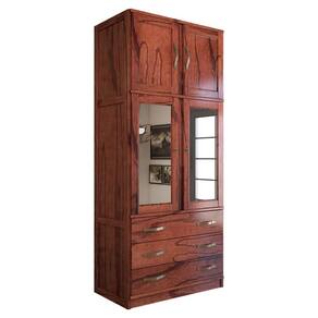 O(a) Guarda-Roupa Solteiro Rústico 4 Portas 3 Gavetas Madeira Maciça com Espelho Mogano - Loja é produzido em Madeira Maciça e Pinus na escala de brilho Alto Brilho, e possui um grau de dificuldade de montagem: Médio.