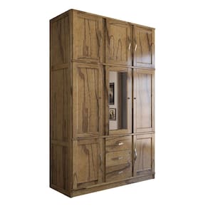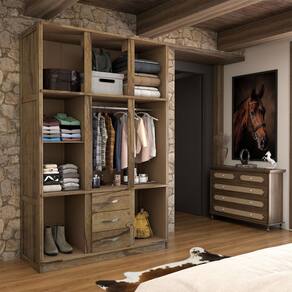 O(a) Guarda-Roupa Solteiro Rústico 8 Portas 3 Gavetas Madeira Maciça com Espelho Castanho - Loja é produzido em Madeira Maciça e Pinus na escala de brilho Alto Brilho, e possui um grau de dificuldade de montagem: Médio.