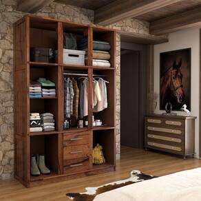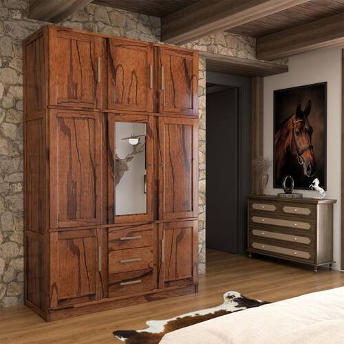 O(a) Guarda-Roupa Solteiro Rústico 8 Portas 3 Gavetas Madeira Maciça com Espelho Mogano - Loja é produzido em Madeira Maciça e Pinus na escala de brilho Alto Brilho, e possui um grau de dificuldade de montagem: Médio.