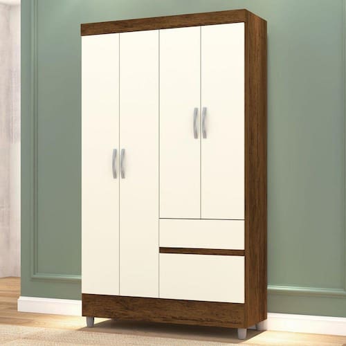 O(a) Guarda-Roupa Solteiro San Diego 4 Portas 2 Gavetas Imbuia/Champanhe - Loja é produzido em MDP na escala de brilho Impressão UV, e possui um grau de dificuldade de montagem: Médio.