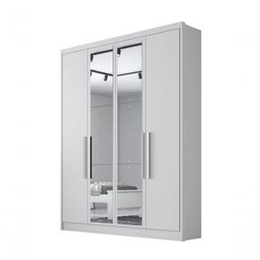 100% MDFGuarda Roupa Solteiro com Espelho 4 Portas 3 Gavetas - Sevilha-Branco - Móveis Horizonte