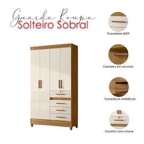 Guarda Roupa Solteiro Sobral 4 Portas Freijó Off White - Moval