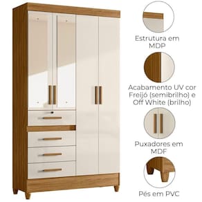 Com design inteligente para valorizar qualquer ambiente, o Guarda-Roupa Solteiro Sobral oferece praticidade e organização no dia a dia. Estrutura em MDP (15/ 12 mm) e acabamento em pintura UV. Composto por portas com dobradiças metálicas (sendo 2 com espelho), cabideiro interno (alumínio), prateleiras e gavetas (sendo uma com trava por chave) com corrediças metálicas. Produto com dupla opção de montagem: pés em PVC ou sapatas plásticas (2 mm) conforme preferência do cliente. Este produto será entregue em 03 volumes.