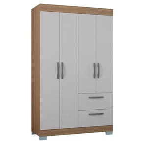Guarda Roupa Solteiro Tóquio 4 Portas Castanho Off White - Poquema