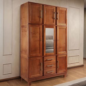 O(a) Guarda-Roupa Solteiro Tunnels 8 Portas 3 Gavetas com Espelho Madeira Maciça Mogano - Pnr Móveis é produzido em Pinus na escala de brilho Alto Brilho, e possui um grau de dificuldade de montagem: Médio.