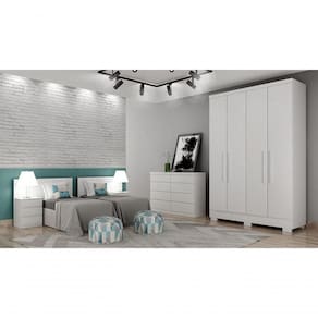 100% MDPGuarda Roupa Solteiro com Pés 4 Portas 2 Gavetas - Veneza-Branco - Móveis Horizonte