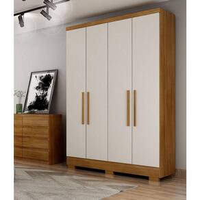 100% MDPGuarda Roupa Solteiro com Pés 4 Portas 2 Gavetas - Veneza-Cumaru/Fendi - Móveis Horizonte