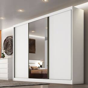 Caracteristicas: Origem do produto: Nacional Ambiente principal: Quarto Material principal: MDF Possui portas: 03 Possui espelho: Sim -com pelicula protetora- Possui prateleiras: 8 Possui gavetas: 08 Possui chave e tranca: Nao Tipo de portas: Correr Tipo de puxador: Aluminio Complexidade da montagem: Medio Sistema de montagem: Parafusos e cavilhas Possui pes: Nao Rodizio com trava: Nao Altura dos pes: Nao Material dos pes: Nao