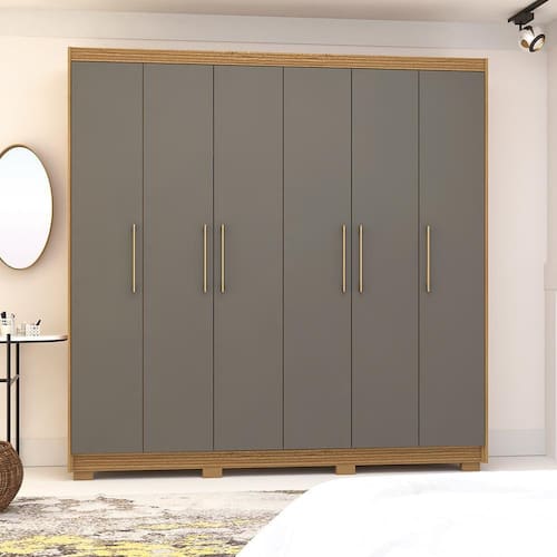 O Guarda Roupa feito em MDP dispõe de seis gavetas, seis portas, cabideiros com duas opções de montagem e possui espaço para guardar os sapatos.
