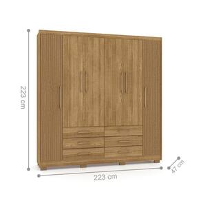 O Guarda Roupa feito em MDP dispõe de seis gavetas, seis portas, cabideiros com duas opções de montagem e possui espaço para guardar os sapatos.