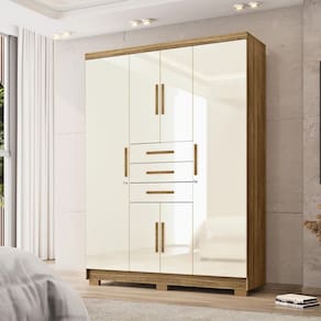 Guarda-Roupa 6 Portas 3 Gavetas Taurus Nature/Champanhe - Vila Rica