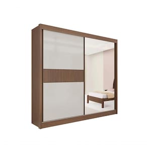 Particularidades do guarda-roupa: Características: - MDF - Gavetas com corrediças telescópicas - Profundidade da gaveta: 40 cm - Abertura total da gaveta - Suporte cabide metálico - Puxadores de alumínio - Produzido com chapa de 15mm e 25mm - Gavetas com puxador - Interno com 2 opções de montagem - Roldanas com molas - Espelho com película de