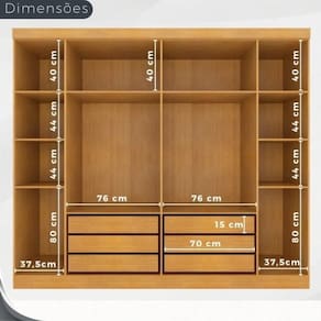 Guarda Roupa Trancoso 2 Portas Correr 6 Gavetas Valverde Cinamono
