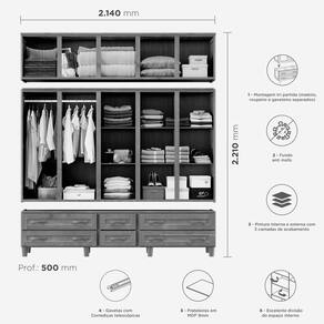 Conteúdo da Embalagem: 1 Guarda-Roupa, manual de montagem e Kit Ferragem