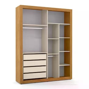 ESPECIFICAÇÕES: Estrutura 100% MDF Pintura UV 2 Portas de Correr com puxadores usinados 4 Gavetas internas Corrediças telescópicas Cabideiros em alumínio Dobradiças metálicas Portas com detalhes em baixo relevo Amplo espaço interno