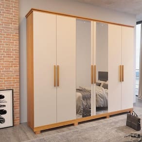 Para deixar seu quarto elegante e sofisticado, o Guarda-roupa VELLAR Bom Pastor e a escolha ideal para voce! Roupeiro com 06 portas, e 06 gavetas para facilitar a organizacao das roupas, tem um lindo acabamento com pintura semi brilho, corredicas telescopicas nas 06 gavetas, interno OFF, produto 100 MDF, varias prateleiras, 02 portas Com Espelho, produto ja com pe.