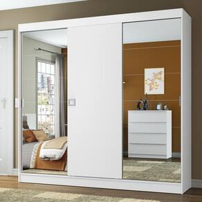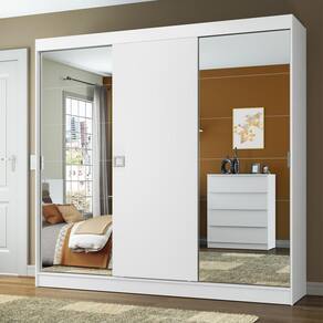 - Itens Inclusos: 3 Cabideiros; 4 Gavetas Internas; 5 Prateleiras; 3 Portas de Correr (2 de Espelho e 1 de Madeira) com Sistema Anti-Descarrilhamento