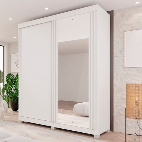 O Guarda-roupa Blumenau é uma escolha confiável para quem busca durabilidade e funcionalidade. Com sua estrutura sólida em chapa de 1,5 cm que garante resistência e confiabilidade, com amplo espaço interno, possui espaço para vestidos, oferece organização e praticidade. Seu design inteligente proporciona montagem inteligente, com detalhes como cabideiro em alumínio, e corrediças telescópicas e pés, torna-o uma opção com excelente custo-benefício para qualquer ambiente. Acabamento da Prateleira: Pintura UV Escala de Brilho da Prateleira: Fosco Acabamento da Gaveta: Pintura UV Possui Organizador de Gaveta: Não Acabamento da Porta: Pintura UV Escala de Brilho da Porta: Fosco Altura do Espelho: 204 cm Altura dos Pés: 7 cm Altura Máxima dos Pés: 7.0000 Ambiente Principal: Quarto codigo_ean: 7900288106131 Complexidade da Montagem: Média: pode ser montado por mais de uma pessoa e/ou necessite de maior conhecimento para montagem Cor: Branco Cor do Produto: Branco Escala de Brilho: Fosco Espessura da Estrutura (mm): 15 mm Espessura das Portas (mm): 15 mm Espessura das Prateleiras (mm): 15 mm Espessura do Espelho: 3 mm Espessura do Fundo (mm): 3 mm Espessura do Fundo das Gavetas (mm): 3 mm Formato do Espelho: Retangular Itens Inclusos: 1 Guarda Roupa + 1 Manual de Montagem + 1 Kit Ferragens Largura do Espelho: 52 cm Linha ou Coleção: Blumenau Manual de Montagem e Instalação: https://product-hub-prd.madeiramadeira.com.br/982960/documents/be091976-d567-47d9-b807-3a5832688e802762119493817429062810626.pdf Marca: Espresso Móveis Material da Gaveta: MDP Material da Porta: MDP Material da Prateleira: MDP Material dos Pés: PVC Material Principal: MDP modular: Não Necessita Montagem: Sim Origem do Produto: Nacional Peso: 158,6 kg Peso Máximo por Gaveta: 3 kg Peso Máximo por Prateleira: 5 kg Possui Calceiros: Não Possui Espelho: Sim Possui Pés: 06 Possui Portas: Sim Possui Prateleiras: Sim Produto Montado: Sim Quantidade de Espelho: 01 Recomendações de Uso, Manutenção e Limpeza: Limpeza com pano macio e levemente umedecido. Não utilizar solventes a base e de inflamáveis. Não utilizar produtos abrasivos. Sistema de Montagem: Parafusos/Cavilhas Tipo de Corrediça da Gaveta: Metálica Telescópica Tipo de Dobradiça/Corrediça da Porta: Alumínio Tipo de Fixação do Espelho: Parafusos Tipo de Gaveta: Interna Tipo de Guarda-Roupa: Solteiro Tipo de Puxador da Gaveta: Não Possui Tipo de Puxador da Porta: Embutido