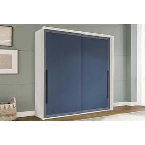 Guarda Roupas 2 Portas De Correr (1 C/ Espelho) E 2 Gavetas Valência Branco/azul - Politorno