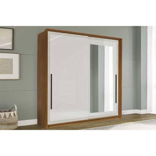 Guarda Roupa Casal 2 Portas de Correr (1 c/ espelho) e 2 Gavetas Valência Freijo/Branco - Politorno