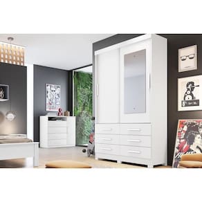 Guarda Roupas 2 Portas de Correr (1 c/ Espelho) e 6 Gavetas Buriti/Jequitibá Branco - Novo Horizonte